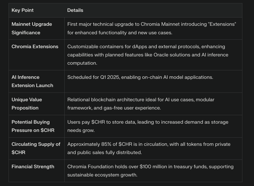 • Relational L1: Chromia merges relational database functionality with blockchain, creating a foundation tailor-made for AI + Web3 projects.