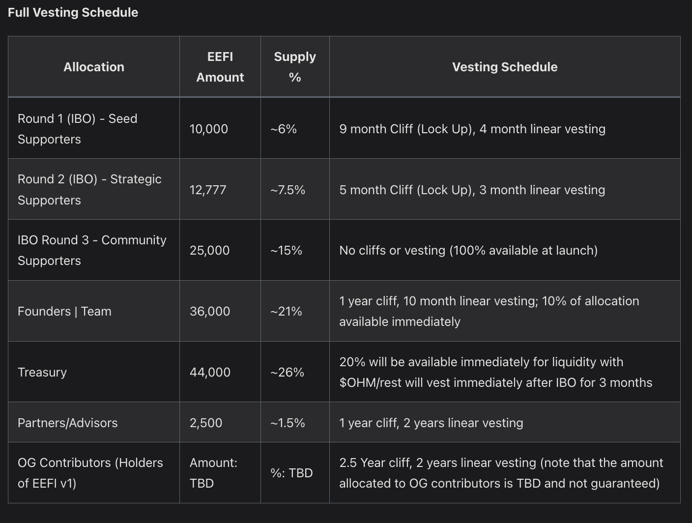 They are holding a seed round of $120k at a price of $12 per $EEFI with a 9 month cliff and 4-month linear vesting.