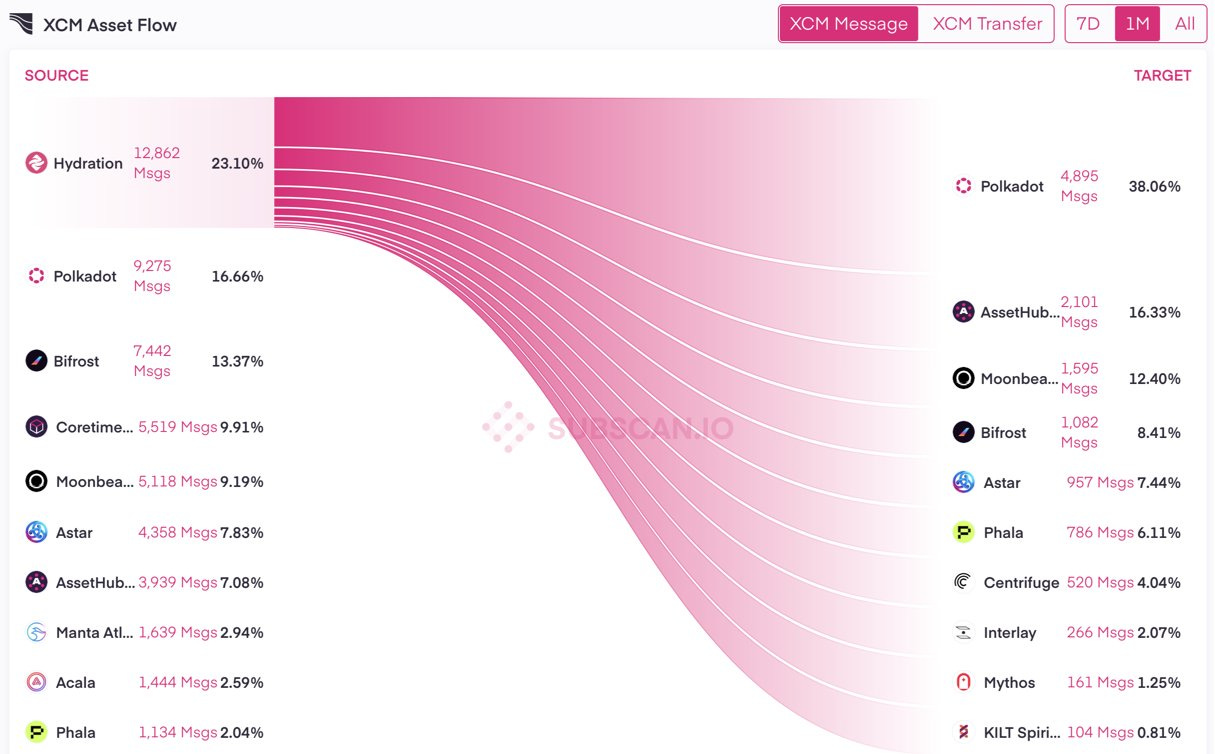 Hydration tops the leaderboard lately with highest number of cross-chain XCM messages weekly & monthly 👇🧵