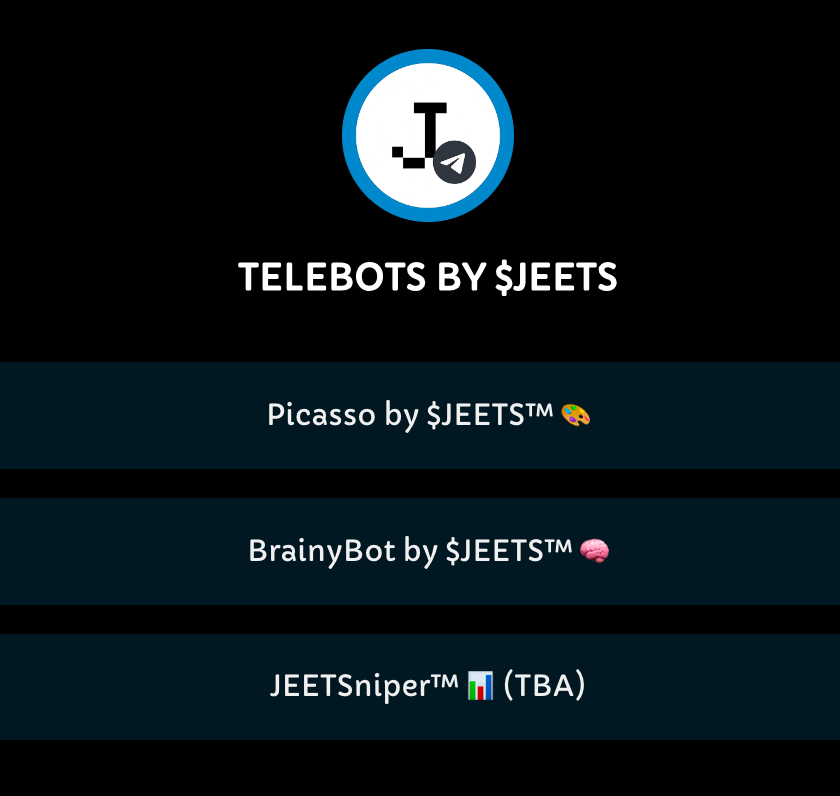 @Jeets4L is the first memecoin AI telegram bot that have 3 products: