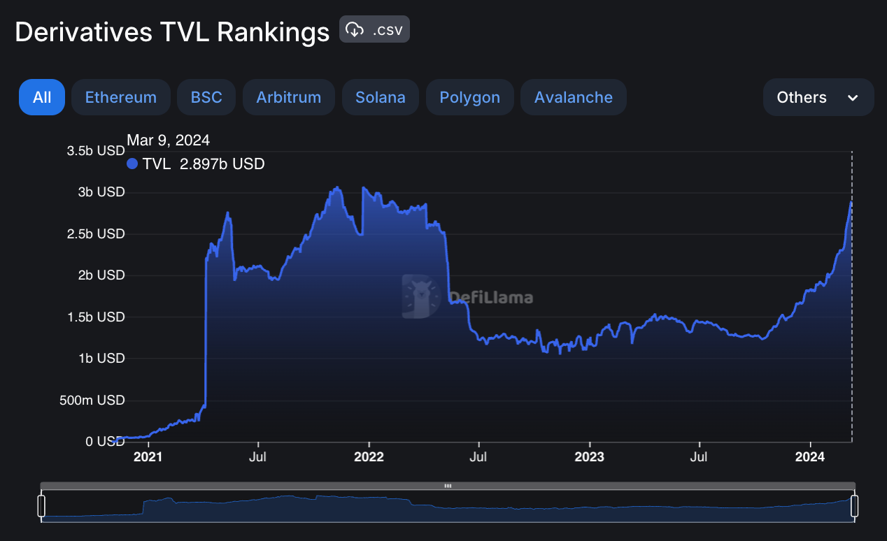 The derivatives sector have reached nearly ATH from the peak of ~$3B we saw in 2022.