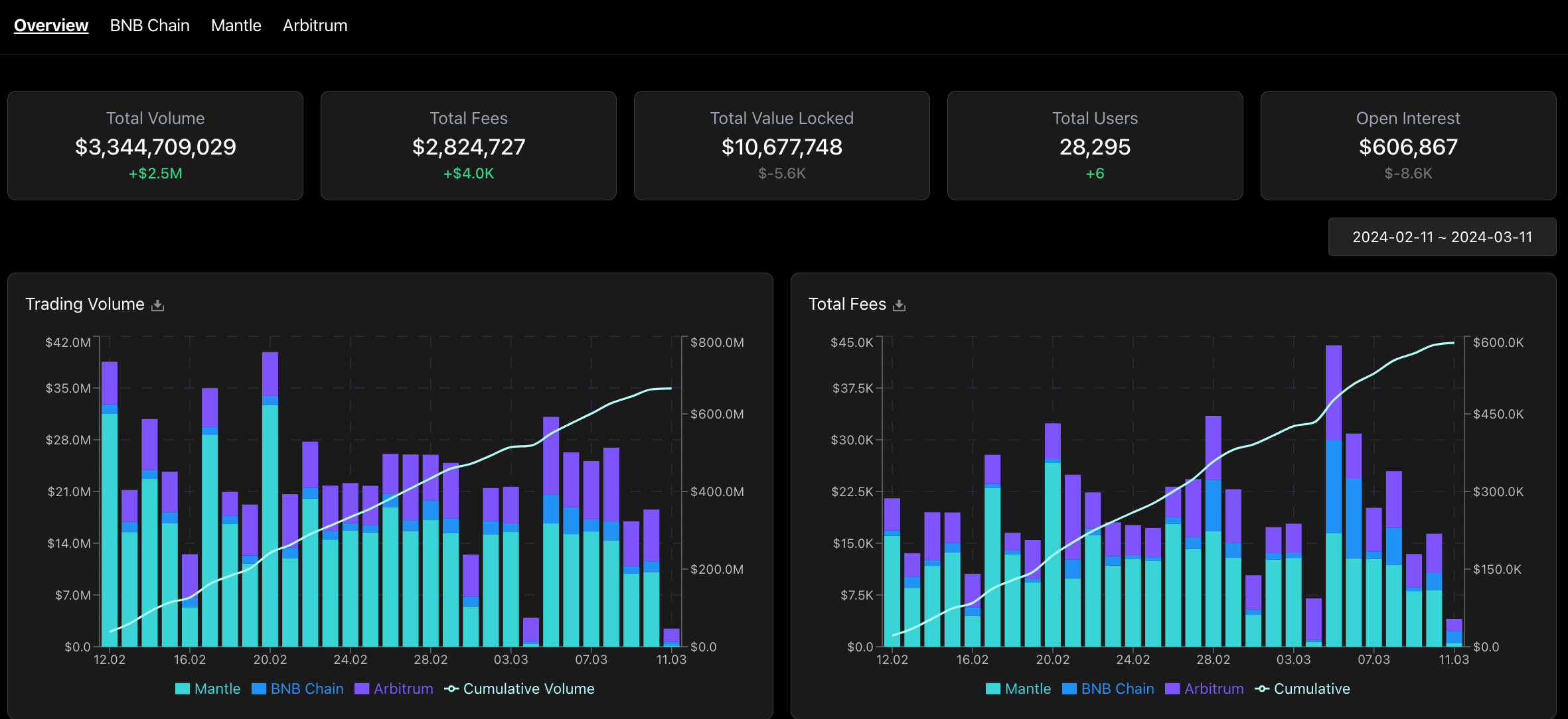 Till date they have $3.3B in trading vol, $10M TVL, $2.8M in fees