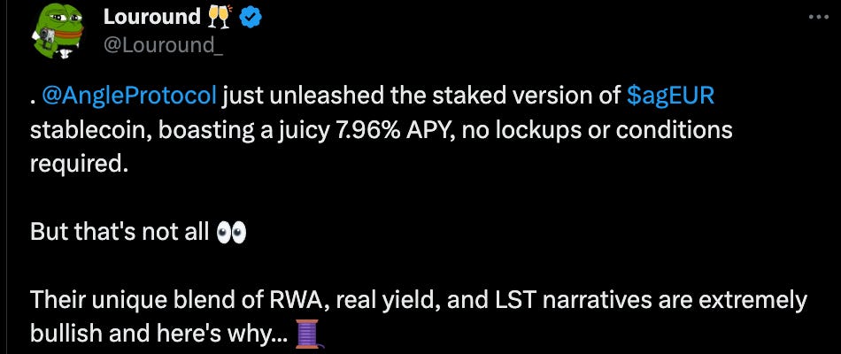 Defi: Socialfi projects stealing the limelight now. $BANANA holders are printing. Angle procotol update with new RWA. ARB grants