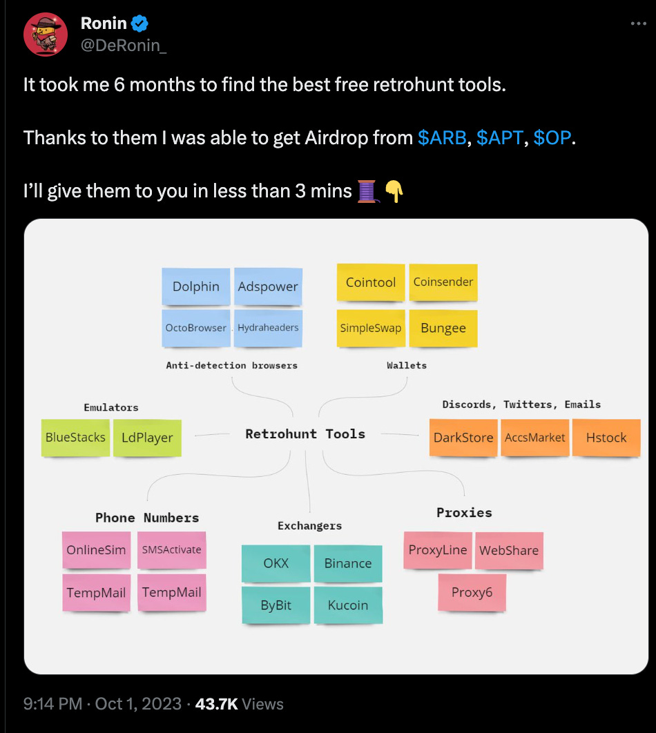 Tools: Prevent sim swapping, Tracking tools, Life hack tools, Farms for the month, Token 2049 database,