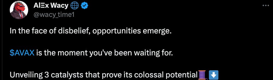 Gm ToE readers. A lovely memeish week with AVAX taking the limelight
