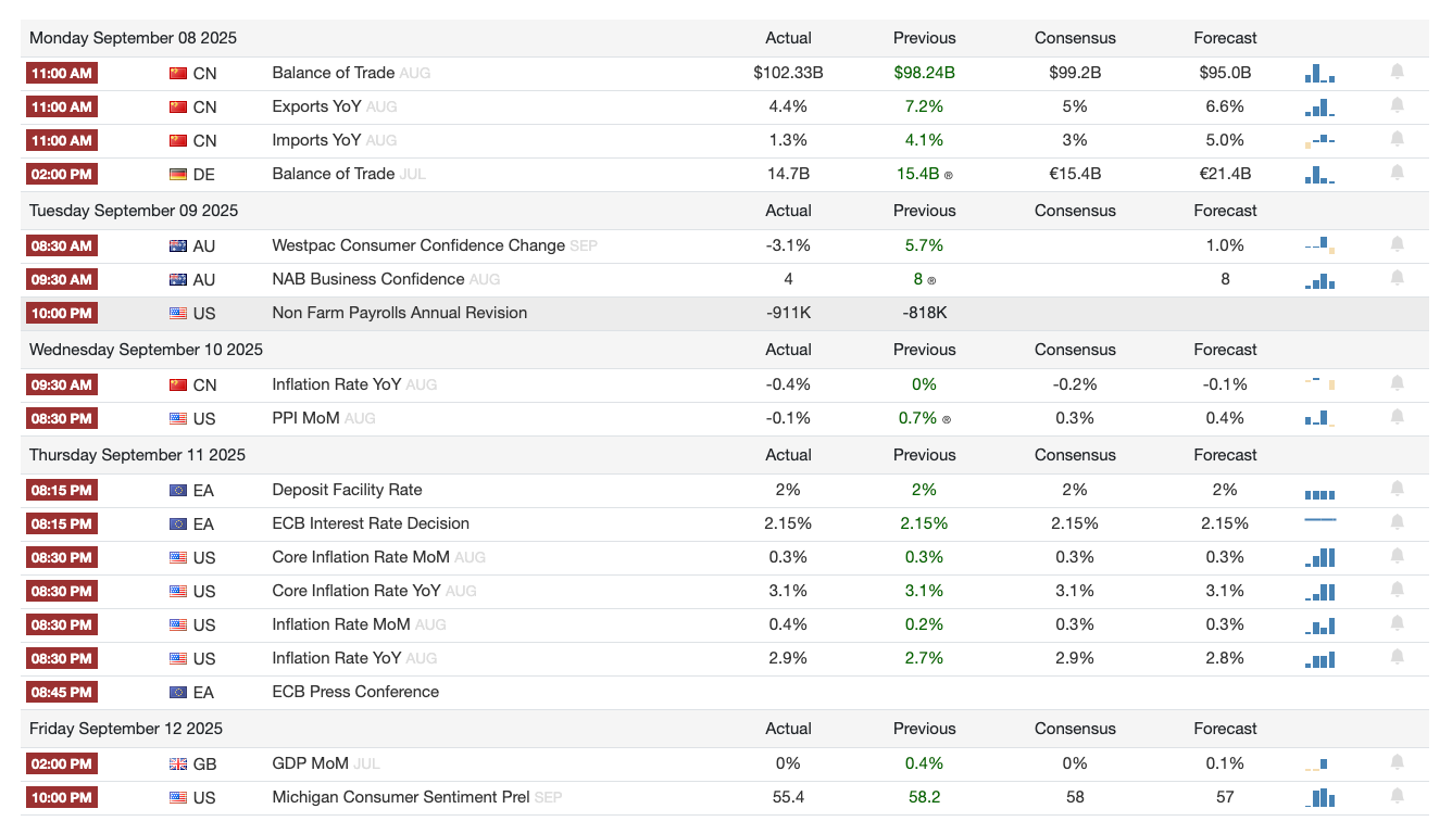 Fed outlook: Futures imply ~90% chance of a September cut, with 2–3 cuts priced by year-end. The market is betting on aggressive easing despite sticky inflation risk.